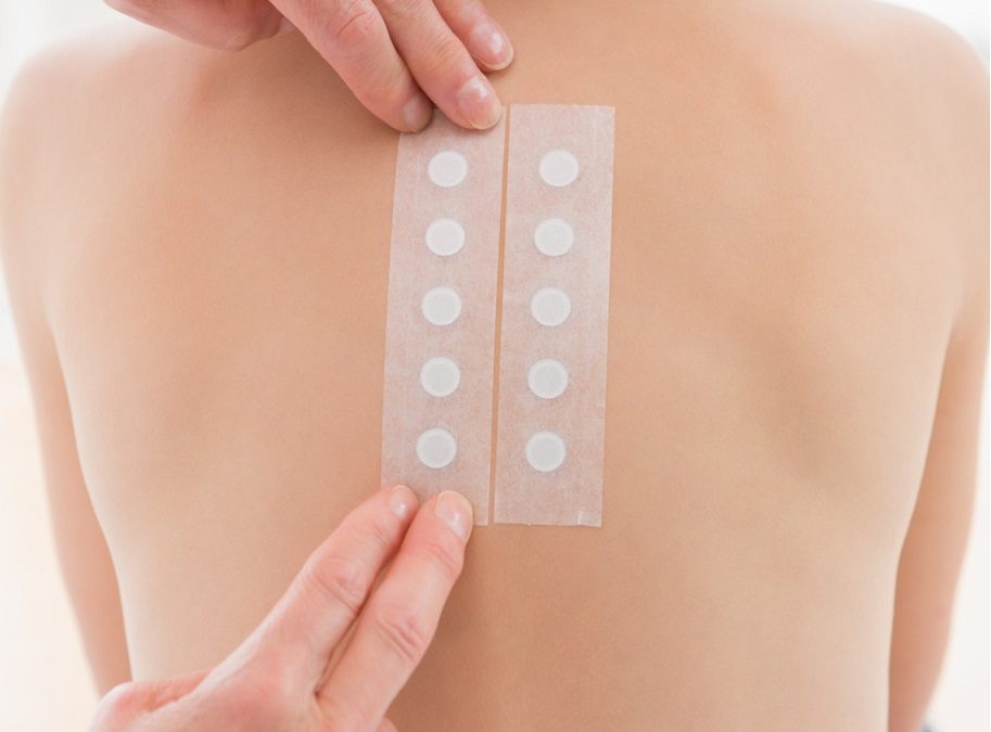 Para hacer el diagnostico de la dermatitis alérgica de contacto e identificar la sustancia química que está provocando alergia al contactar con la piel, es necesario realizar unas pruebas de alergia a químicos conocidas como pruebas epicutaneas. Las pruebas epicutaneas consiste en unos parches que se colocan sobre la espalada para reproducir un contacto continuo de 48h y posteriormente ver la reacción a las 96h. Por este motivo, en la unidad de alergia cutánea de ALERGIADEXEUS los parches se colocan un lunes, se retiran el miércoles (pasadas 48h) y la lectura la realiza el médico alergólogo a las 96horas. Durante este tiempo la espalda debe permanecer seca para que permanezca el producto en la piel.